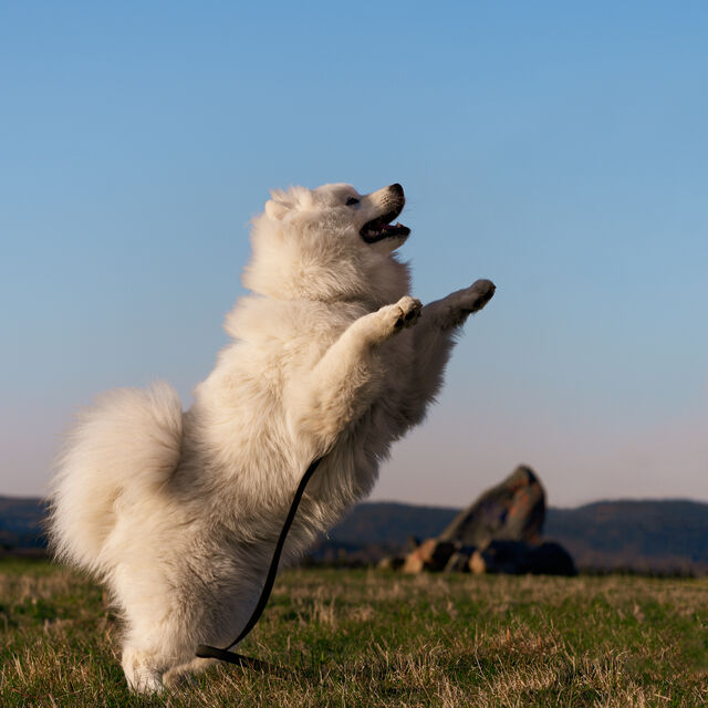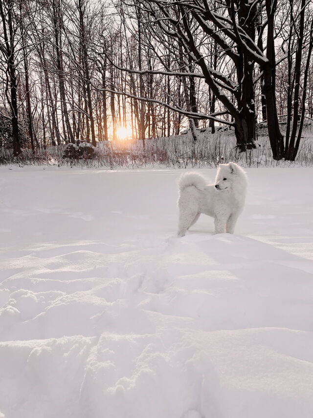 Bilder på Samson, vår dotters Samojed.